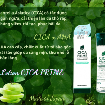 AHA thúc đẩy sự thay đổi của lớp sừng cũ và có tác dụng làm mịn da. Nó cũng có hiệu quả đối với da xỉn màu do khô, da có lỗ chân lông to và da thô ráp. CICA PRIME sử dụng AHA chiết xuất 100% từ táo, nhẹ dịu và an toàn cho da, với bộ 3 chiết xuất tối ưu hiệu quả: