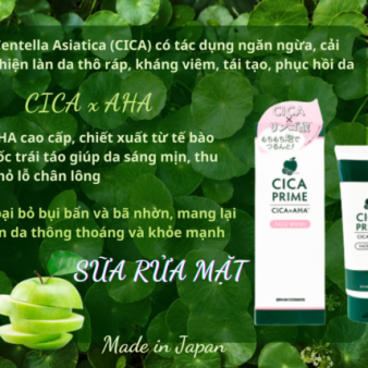 AHA thúc đẩy sự thay đổi của lớp sừng cũ và có tác dụng làm mịn da. Nó cũng có hiệu quả đối với da xỉn màu do khô, da có lỗ chân lông to và da thô ráp. CICA PRIME sử dụng AHA chiết xuất 100% từ táo, nhẹ dịu và an toàn cho da, với bộ 3 chiết xuất tối ưu hiệu quả: